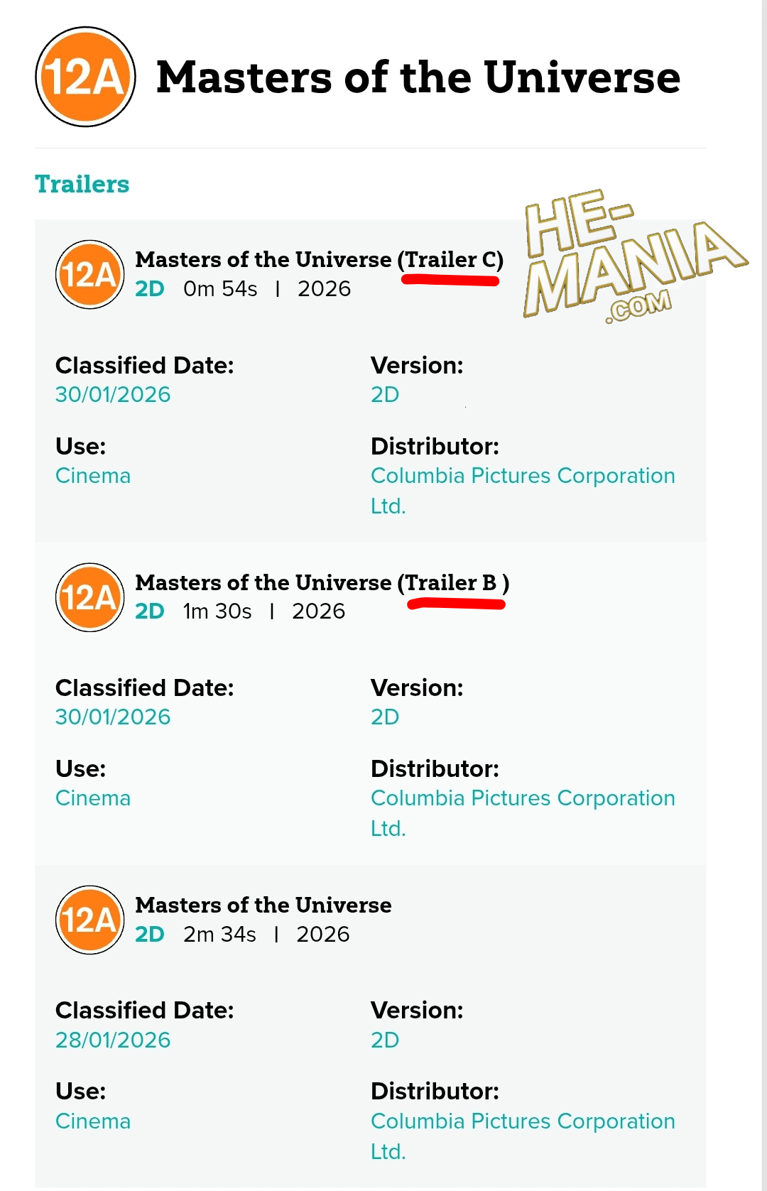 And this month, the British Board of Film Classification has classified a new trailer for the “Masters of the Universe” Movie. And unlike the previous trailer rated 12A…
