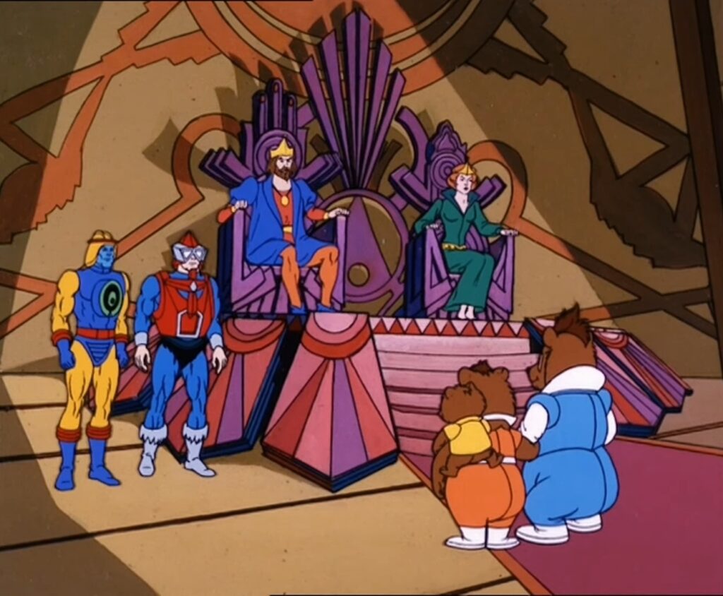 Weird bear people? ooookay? Find it a bit funny when characters that look like they’re from a completely different cartoon show up. Knowing Filmation was cheap, did they really just take any character animation model from any show they had, alter it to look at least a bit or passably alien and call it a day? Those bears have to be reuses from another show I’m betting.