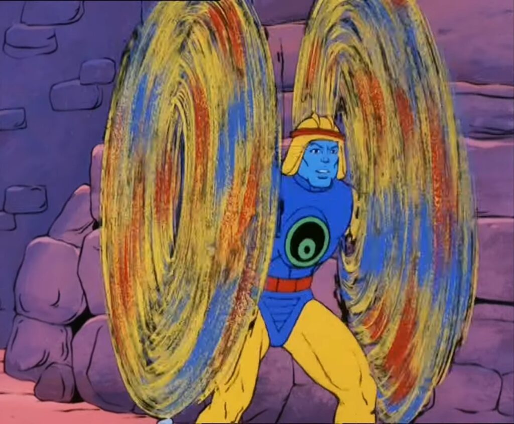 Also Mekanek, Moss Man and Sy-Klone in the same episode. Neat. It seems only near the end of the show run Filmation remembered “Oh yeah! We’re a toy commercial show, we need to hastily show off all these toys!"