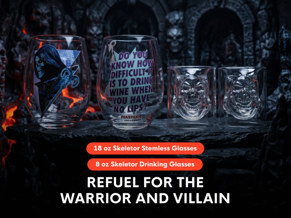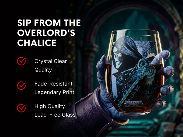 - Officially Licensed: Authentic Masters of the Universe glassware featuring Skeletor in a bold, detailed design. This Masters of the Universe wine glass set is made for true fans and collectors