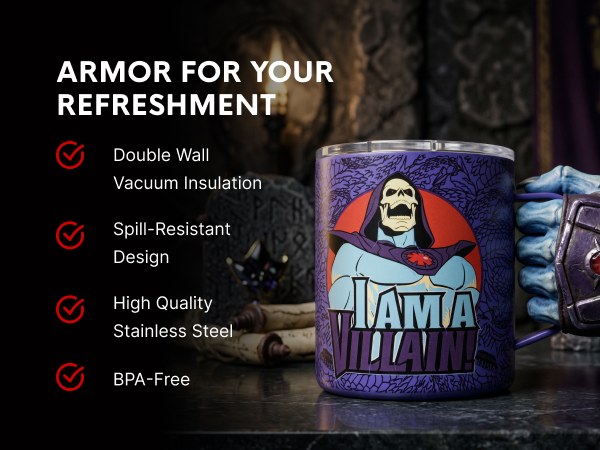 - On-the-Go Style: Lightweight, durable, and adventure-ready. Whether you’re camping, commuting, or powering up for the day, this Masters of the Universe cup delivers rugged performance with iconic MOTU style. A must-have for fans of the Lord of Destruction!