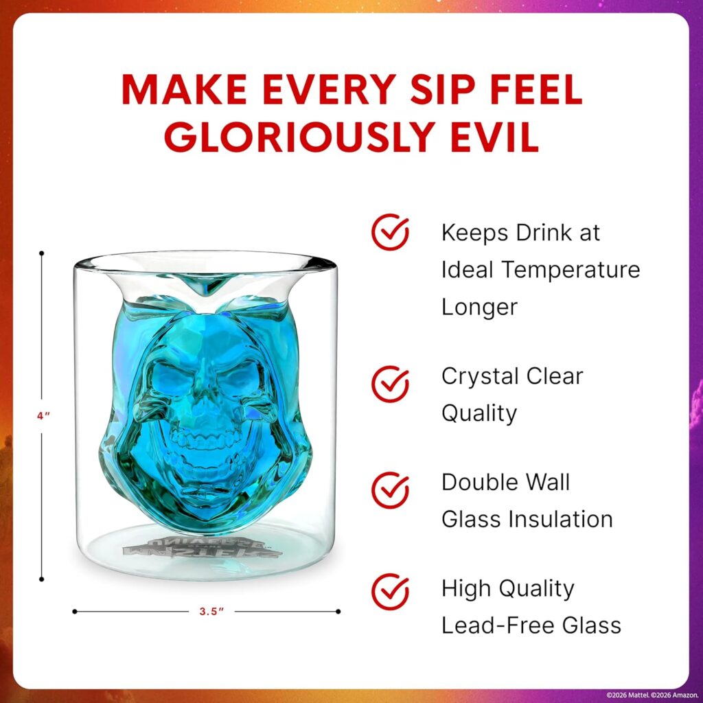 - Superb Quality: Crafted from clear, durable glass with bold villain-inspired artwork, this Skeletor MOTU cup blends sleek modern design with the gloriously evil energy fans love from the Lord of Destruction himself