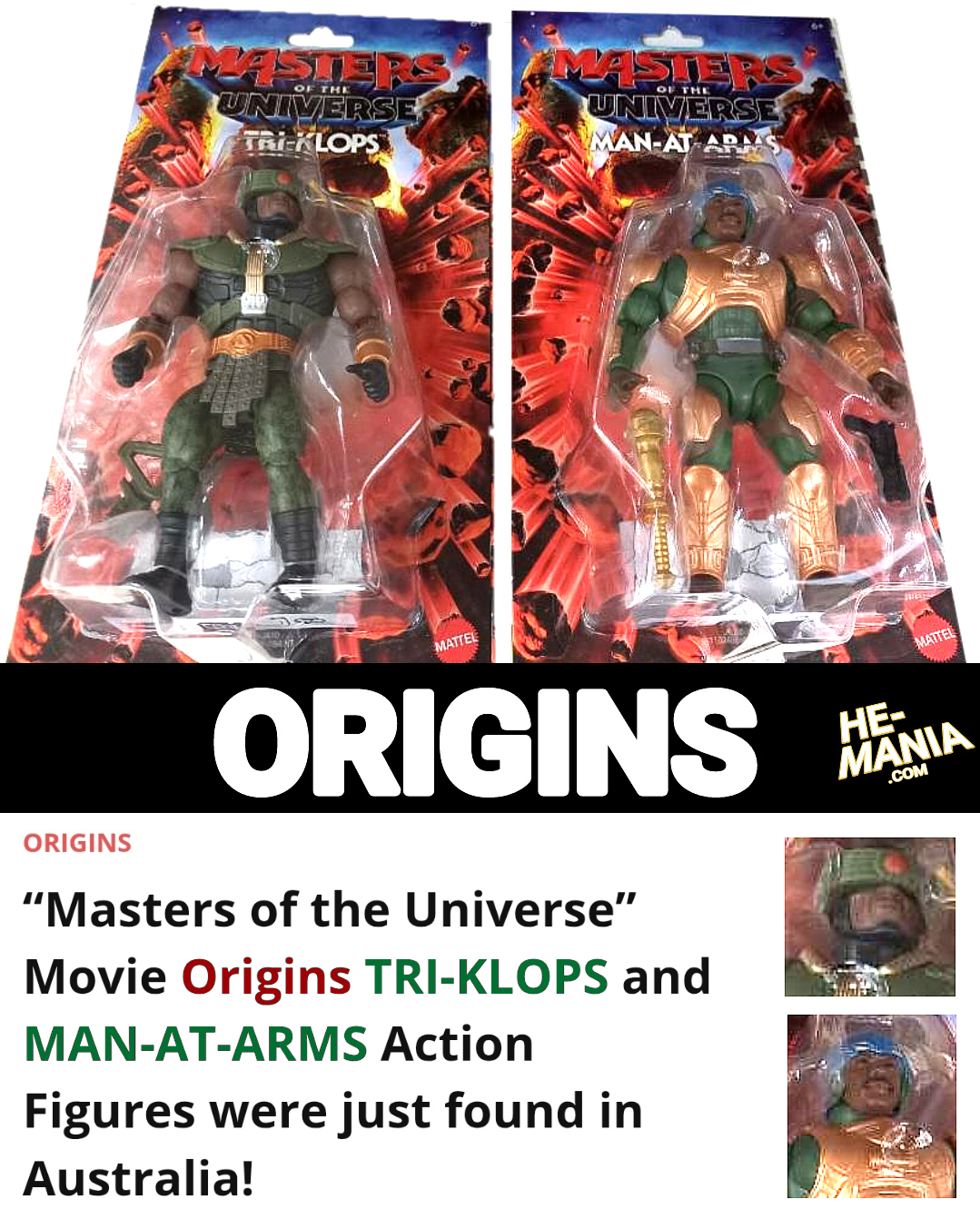 Now we have our first look at a Movie Tri-Klops and Movie Man-At-Arms in the Origins Action Figure line! Check it out!