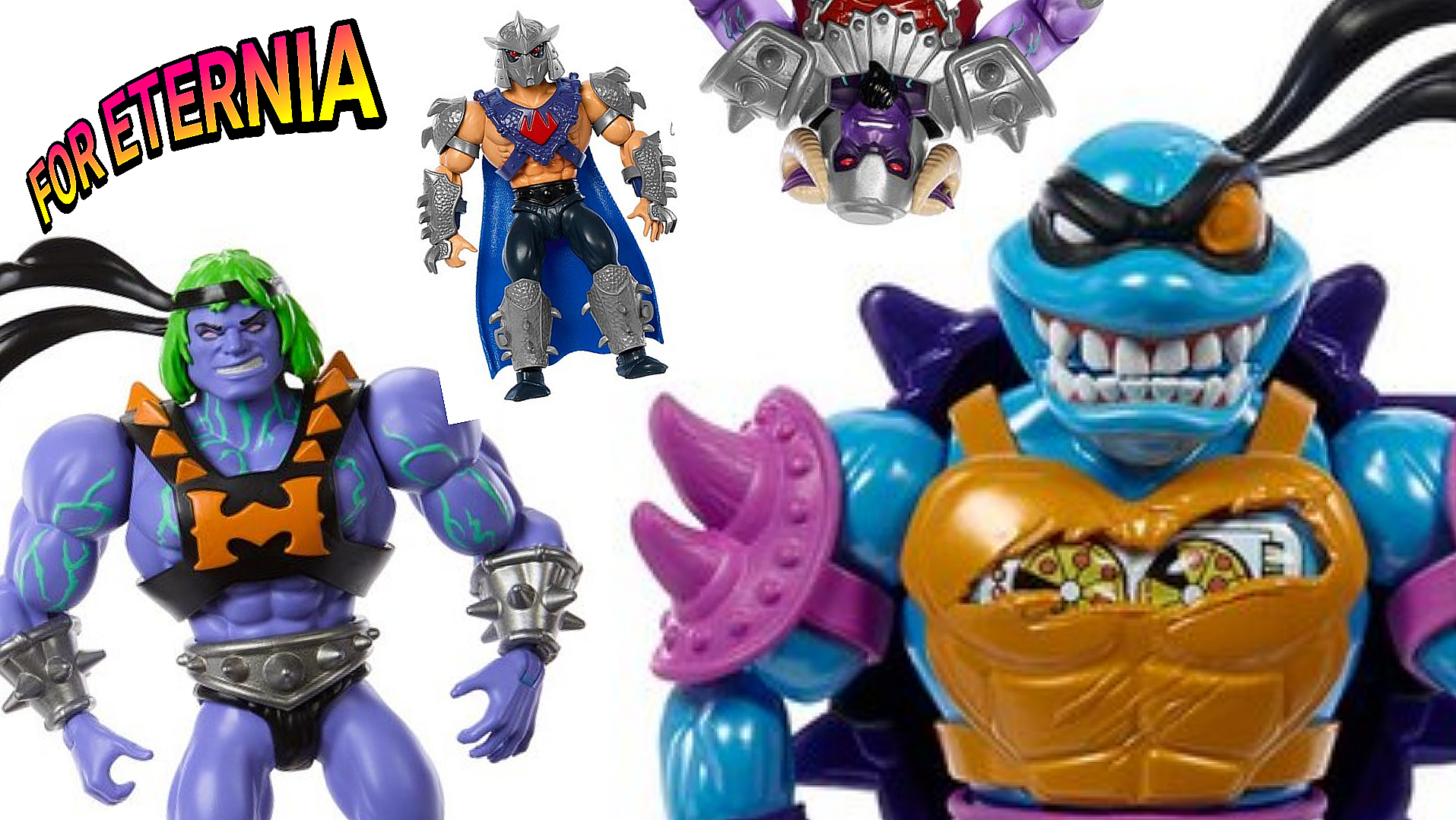 Questions about this. Maybe there are more than 12? I don’t see a Michaelangelo and didn’t the original story say we’d get a Skeletor? I’d like to see Splinter somehow too. The mutated He-Man originally looked like he had some darker, almost translucent purple skin. But this close up individual photo looks more opaque and way less cool. It will make a difference whether I get him or not but I love Mouse Jaw, Krang, and Shredder!