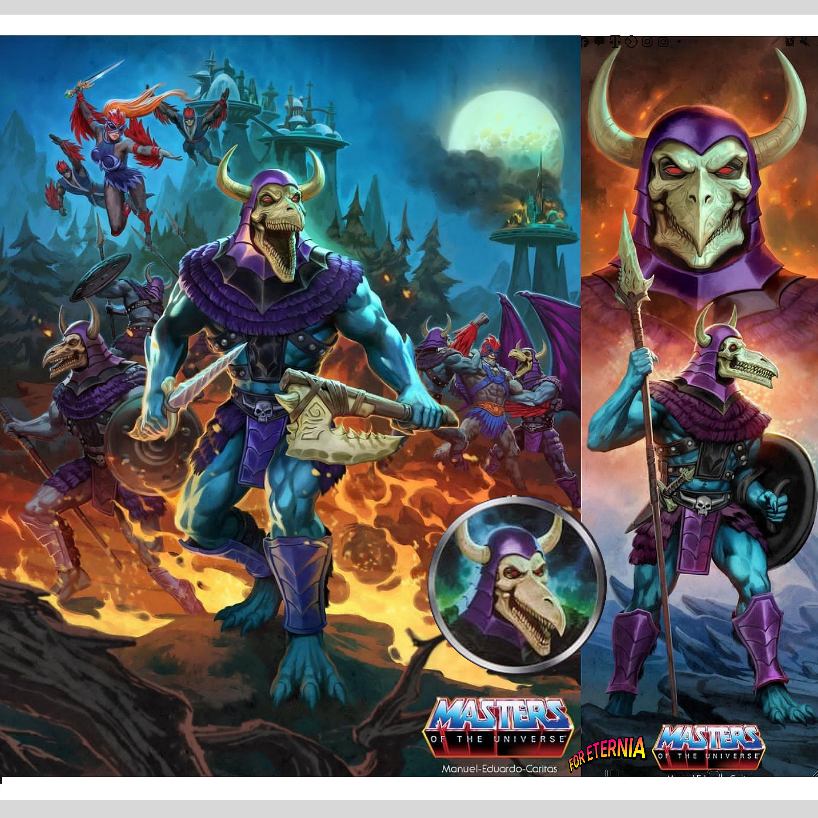 The Complete Set of Masterverse Masters of the Universe "New Eternia" Skelcon illustrations by artist Simon Eckert 🎨 (and courtesy of Roy Juarez.)