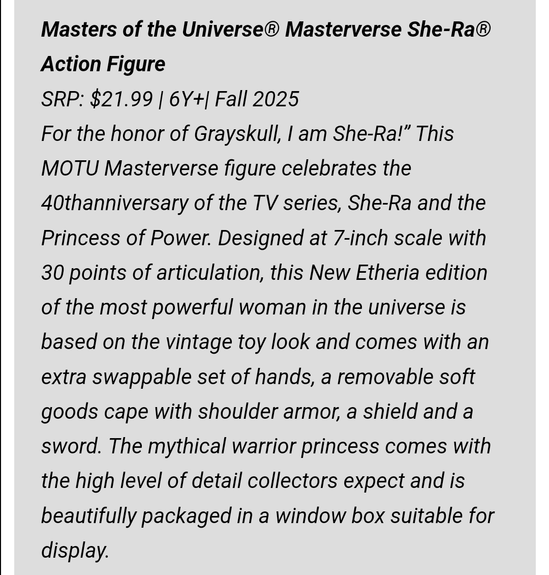 Yep, and it states "based on the vintage toy look".@depp76 the description mattel sent out says "New Eternia".