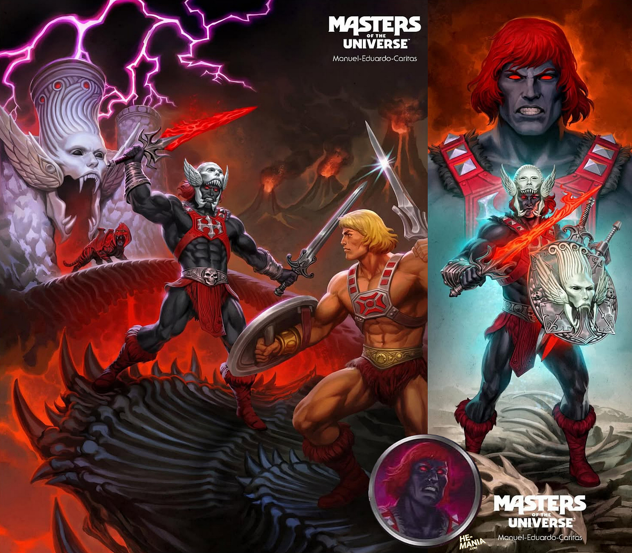 The Complete Set of Masterverse Masters of the Universe "New Eternia" ANTI-ETERNIA HE-MAN illustrations by artist Simon Eckert 🎨 (and courtesy of Roy Juarez.)