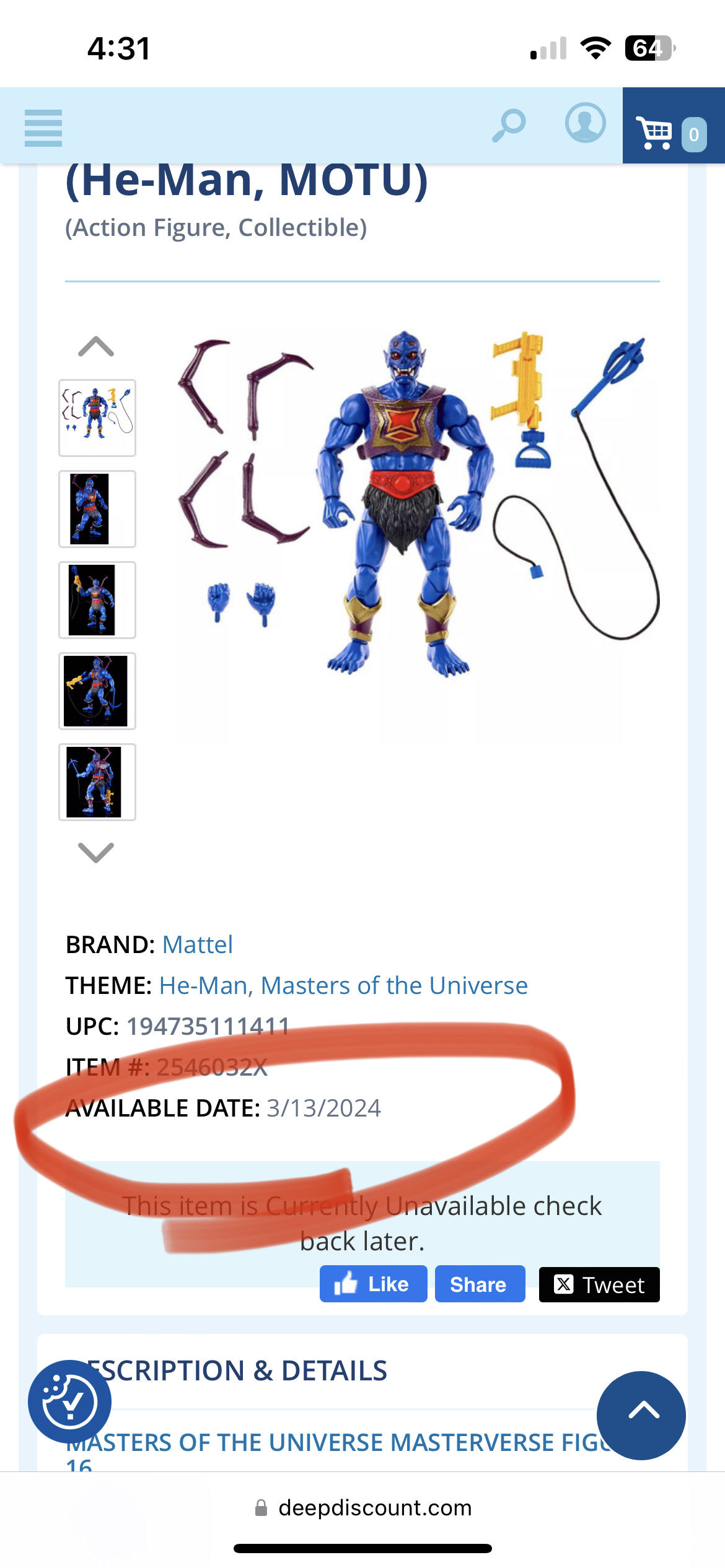 Also, when Masterverse first hit, BBTS sold out of Stinkor. He was sold out for a long time but then he showed up again & after all this time, he is still IN STOCK. I keep checking BBTS constantly hoping Buzz-Off will come back in stock. Or switch from sold out to pre-order meaning they are going to get more. But they seem to be permanently sold out.