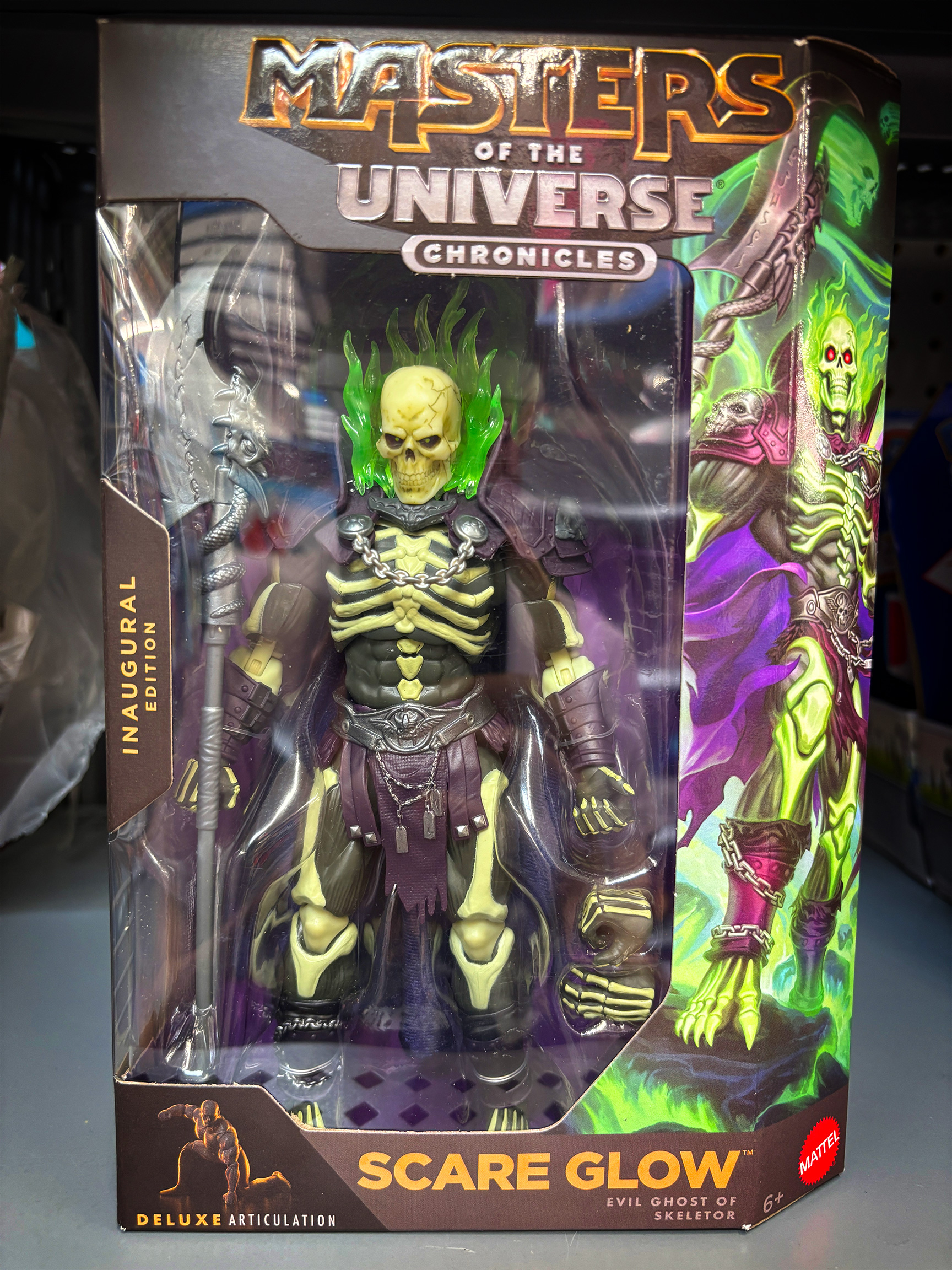 Ok, I don't get this approach by Mattel. The in-hand reviews of Chronicles He-man pretty clearly show him to be in sclae with other 6" figures and notably shorter than Masterverse. Why in the world would they release a Scare Glow in that same line, but in a different scale...?!