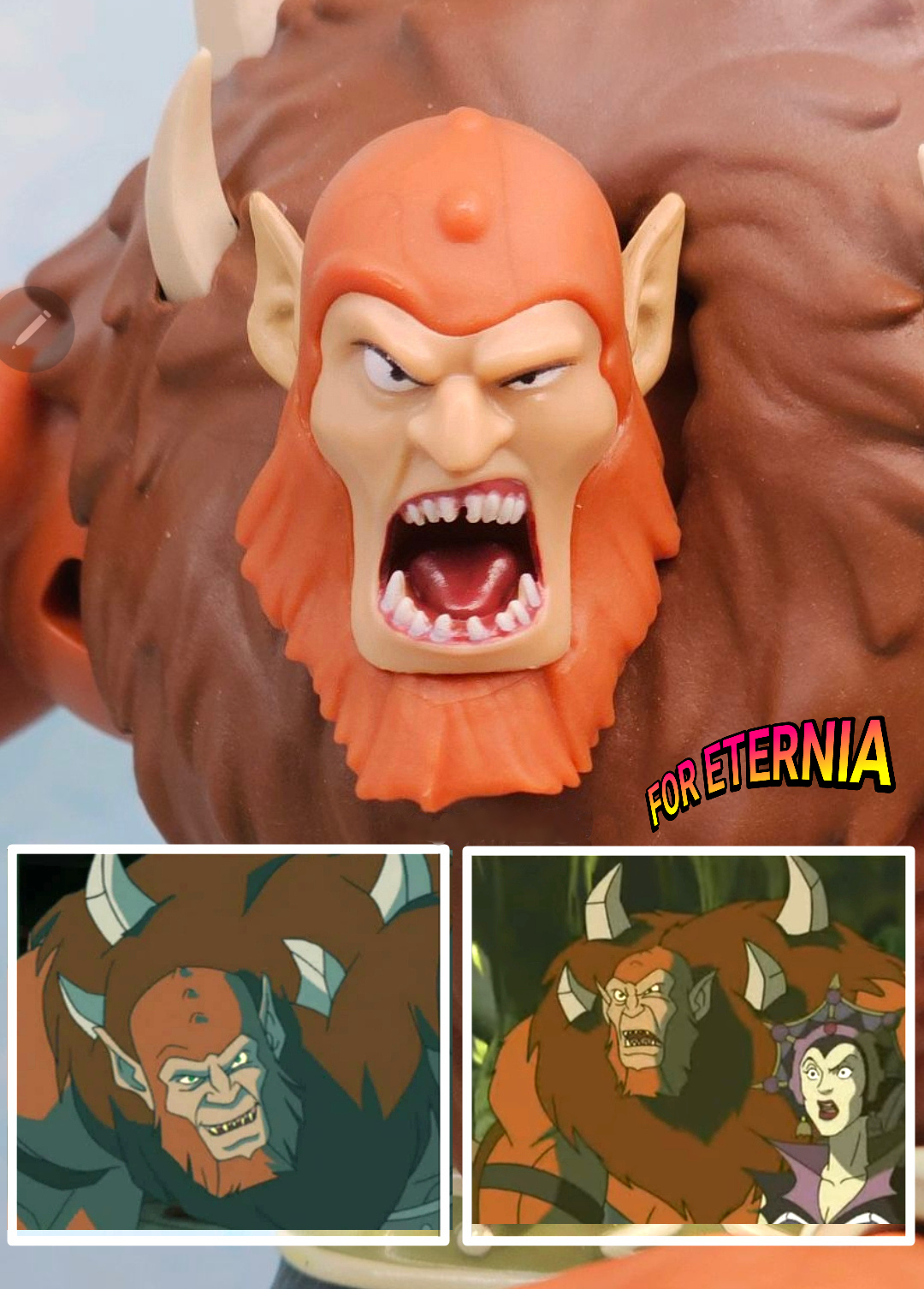 Comparing the facial cartoon likeness of the upcoming Masters of the Universe: Origins "Cartoon Collection" BEAST MAN (200X) Figure to the 2002 cartoon series "He-Man and the Masters of the Universe".
