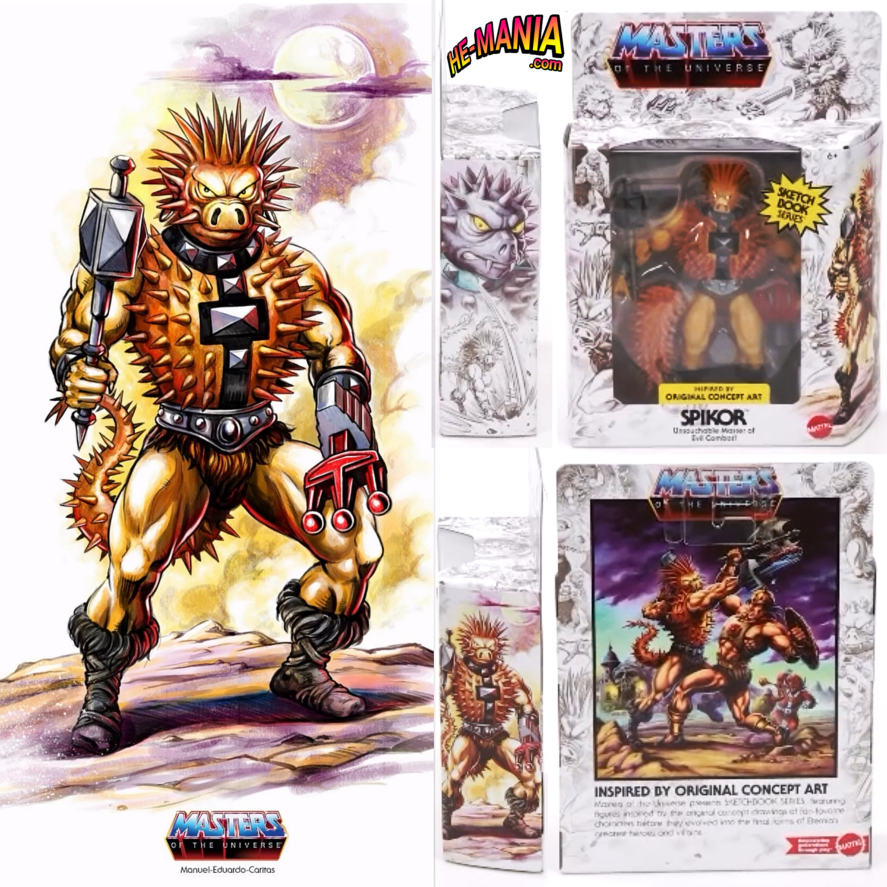 A low resolution look at the packaging for the upcoming Masters of the Universe: Origins "Sketchbook Series" SPIKOR figure, courtesy of Mattel packaging designer Roy Juarez.