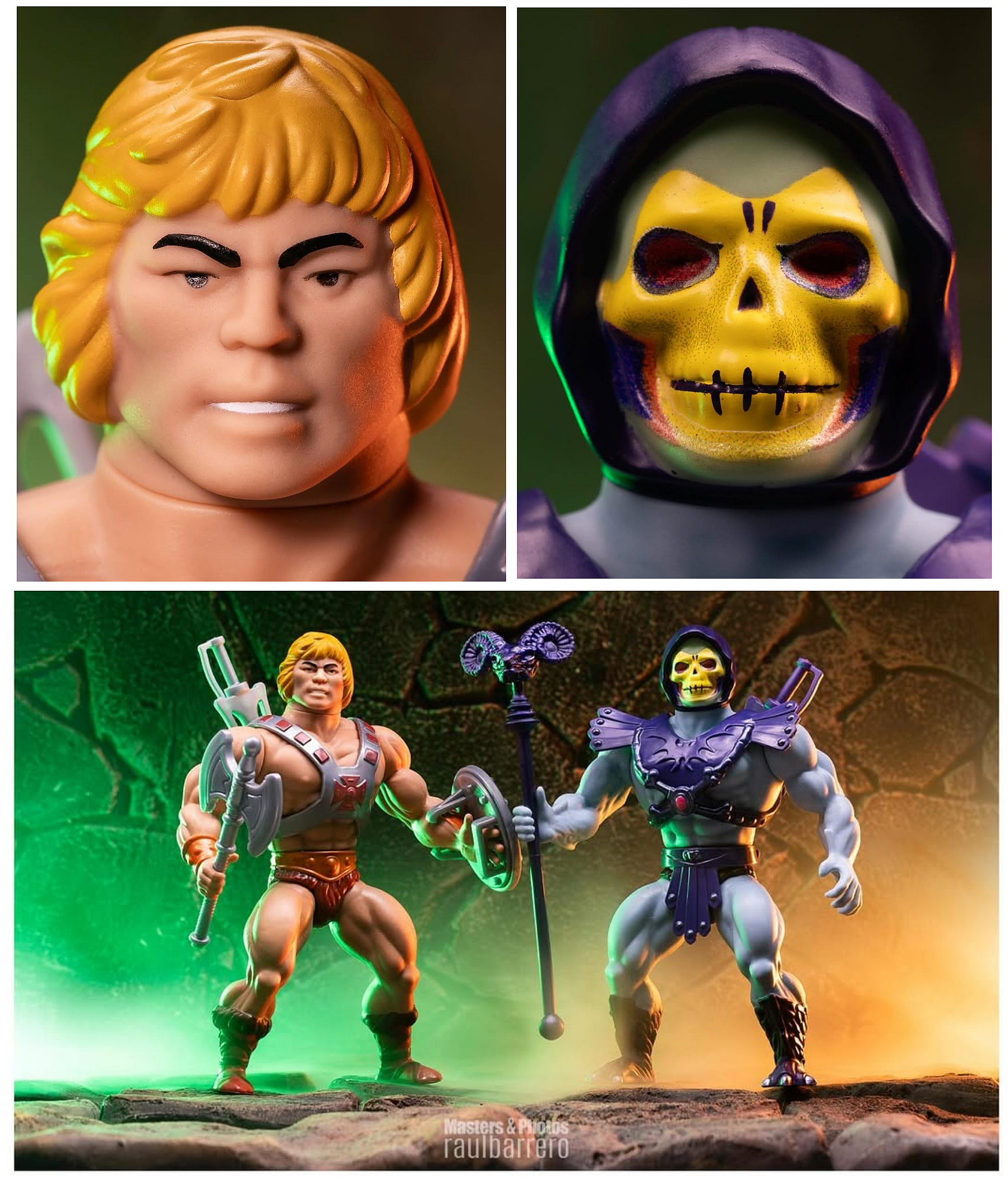 A closer look at the headsculpts for the Masters of the Universe: Origins "Retro Punching HE-MAN and SKELETOR" Mattel 80th Anniversary Set by master photographer Raúl Barrero! (Coming to Target Stores in the U.S. soon!)