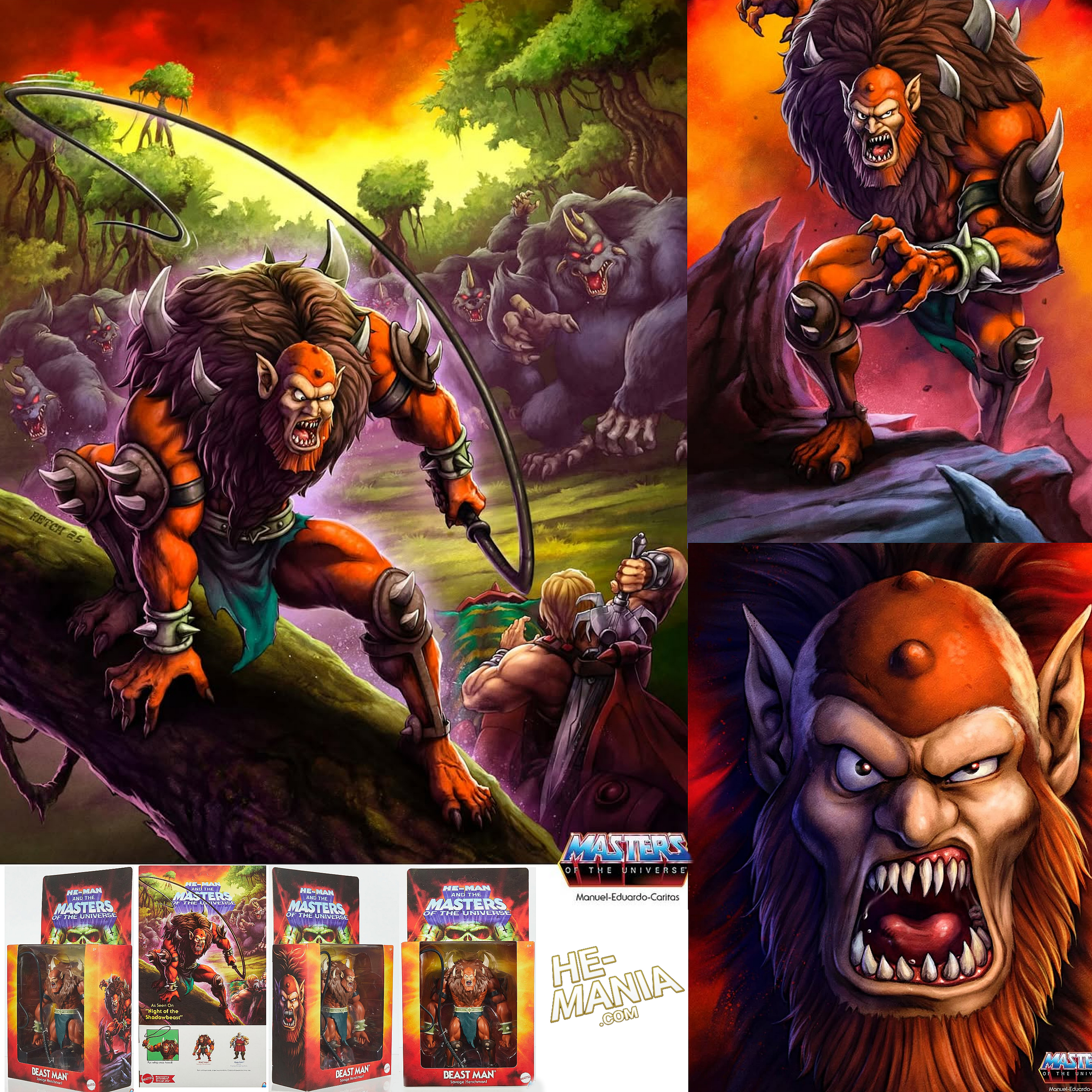 A look at the terrific deluxe packaging artwork for the Masters of the Universe: Origins "Cartoon Collection" (200X) BEAST MAN action figure by artist Francisco Etchart 🎨 and courtesy of Mattel Packaging Designer Roy Juarez.