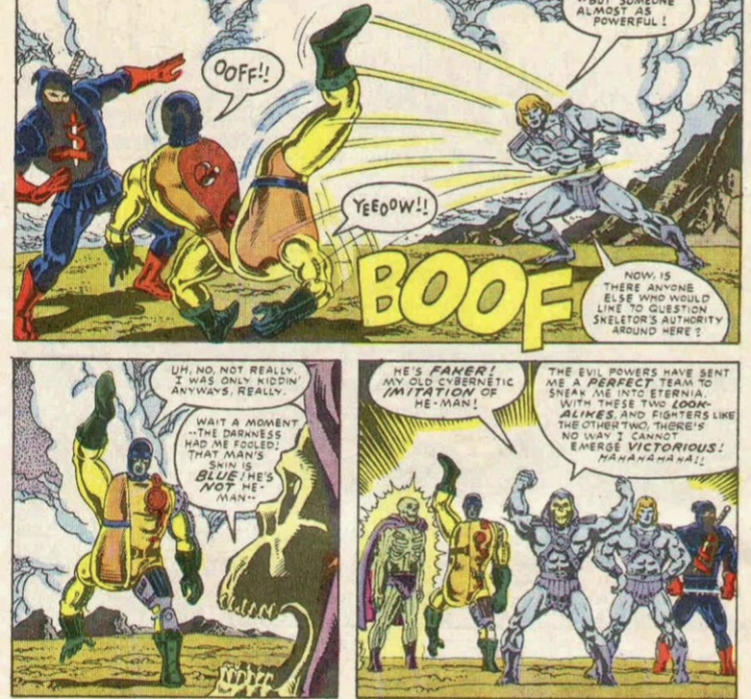 You've been missing out. I think you'll really enjoy him, especially if they keep the feature. You can work him into displays in really silly ways, like having his left side knocking on Grayskull 's door to distract He-Man while his right side tries to climb through a window.