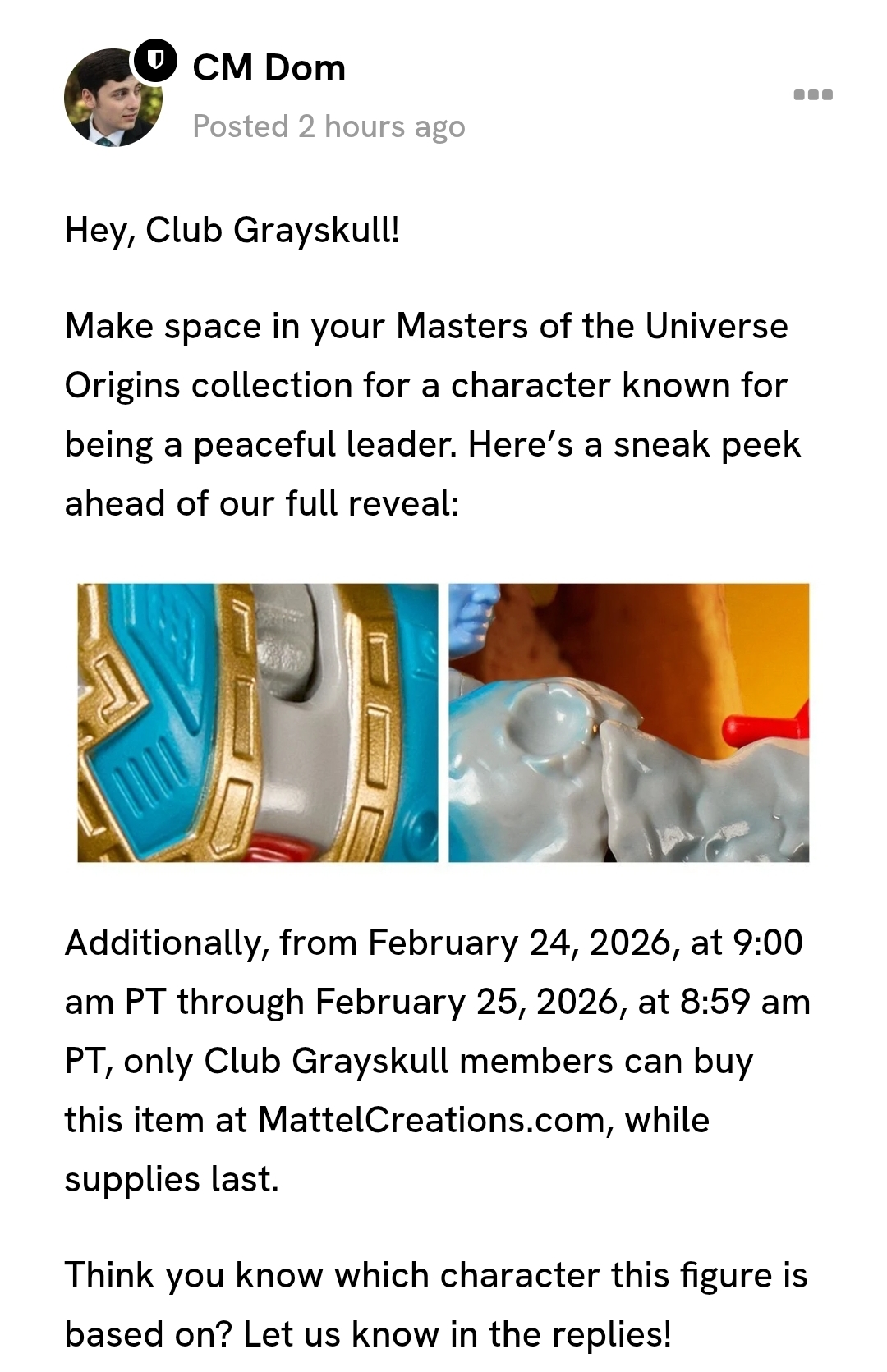 The Mattel Creations website has confirmed that Stonedar will be the next Motu Origins offering planned for February 24. https://www.youtube.com/post/UgkxGWwsRX-VNnMG_X6nHfAh7ZO0gGFi4_Jb