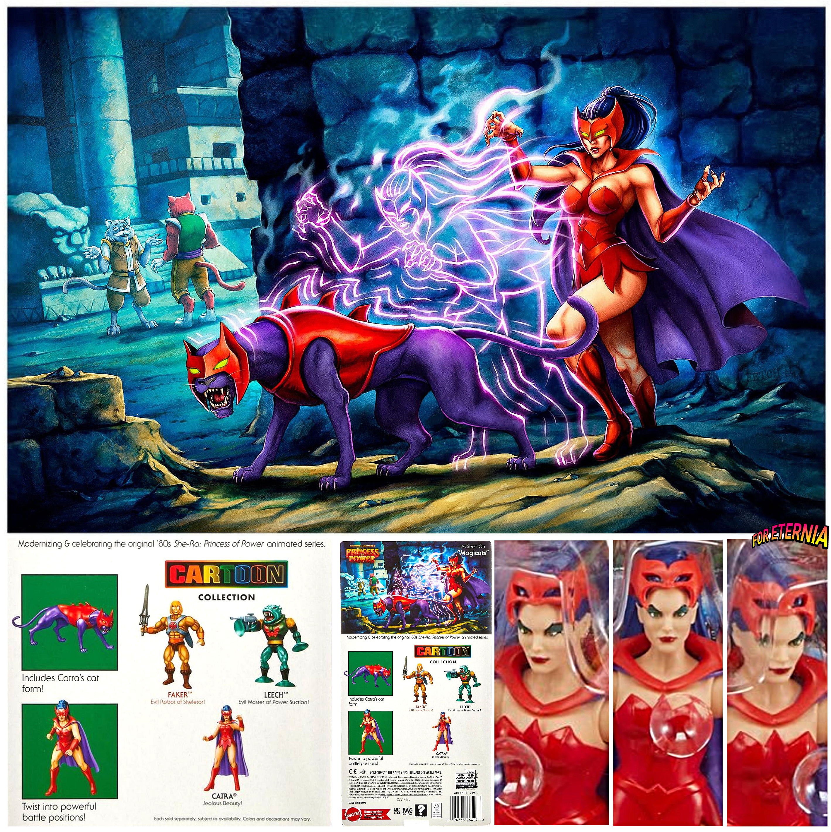 A better look at the terrific cardback artwork for the upcoming He-Man and the Masters of the Universe: Origins "Cartoon Collection" CATRA figure by artist Francisco Etchart 🎨 and courtesy of packaging designer Roy Juarez.