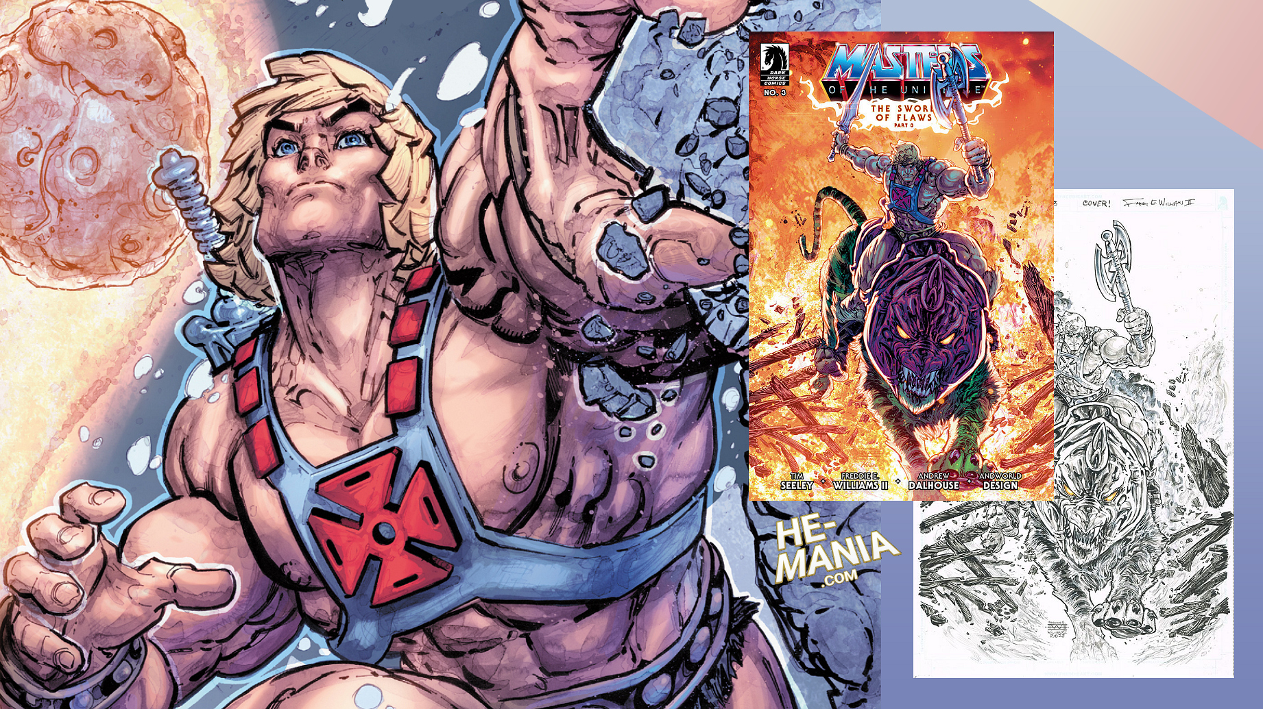 The first five pages from the upcoming third issue of the Dark Horse Comics Masters of the Universe “The Sword of Flaws” series is now online, courtesy of Dark Horse Comics. Written by Tim Seeley with art by Freddie E. Williams II, while this preview does not spoil the entire issue, it does contain some spoilers, so please keep that in mind if you plan to proceed. Check out this sneak peek: Main Cover by Freddie E. Williams II Variant Cover by Caitlin Yarsky Now check out the line art for the awesome main cover by Freddie E. Williams II: “Masters of the Universe: The Sword of Flaws”…