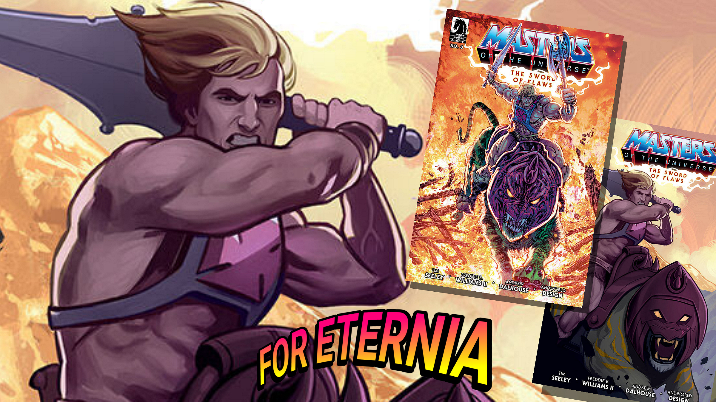 The first issue for Dark Horse Comics and Mattel’s Masters of the Universe new comic series titled “The Sword of Flaws” has yet to arrive in comic book stores yet, but we already have the exciting covers and synopsis for issue #3 to show you! Starting with the cover artwork, issue #3 will have two covers to choose from, the main and one variant. Check out the covers below that both feature Battle Cat! Main Cover by Freddie E. Williams II Variant Cover by Caitlin Yarsky Now for the official synopsis! Warning: *Minor Spoilers Ahead* “After their confrontation with the ancient god Procrustus, He-Man and the…