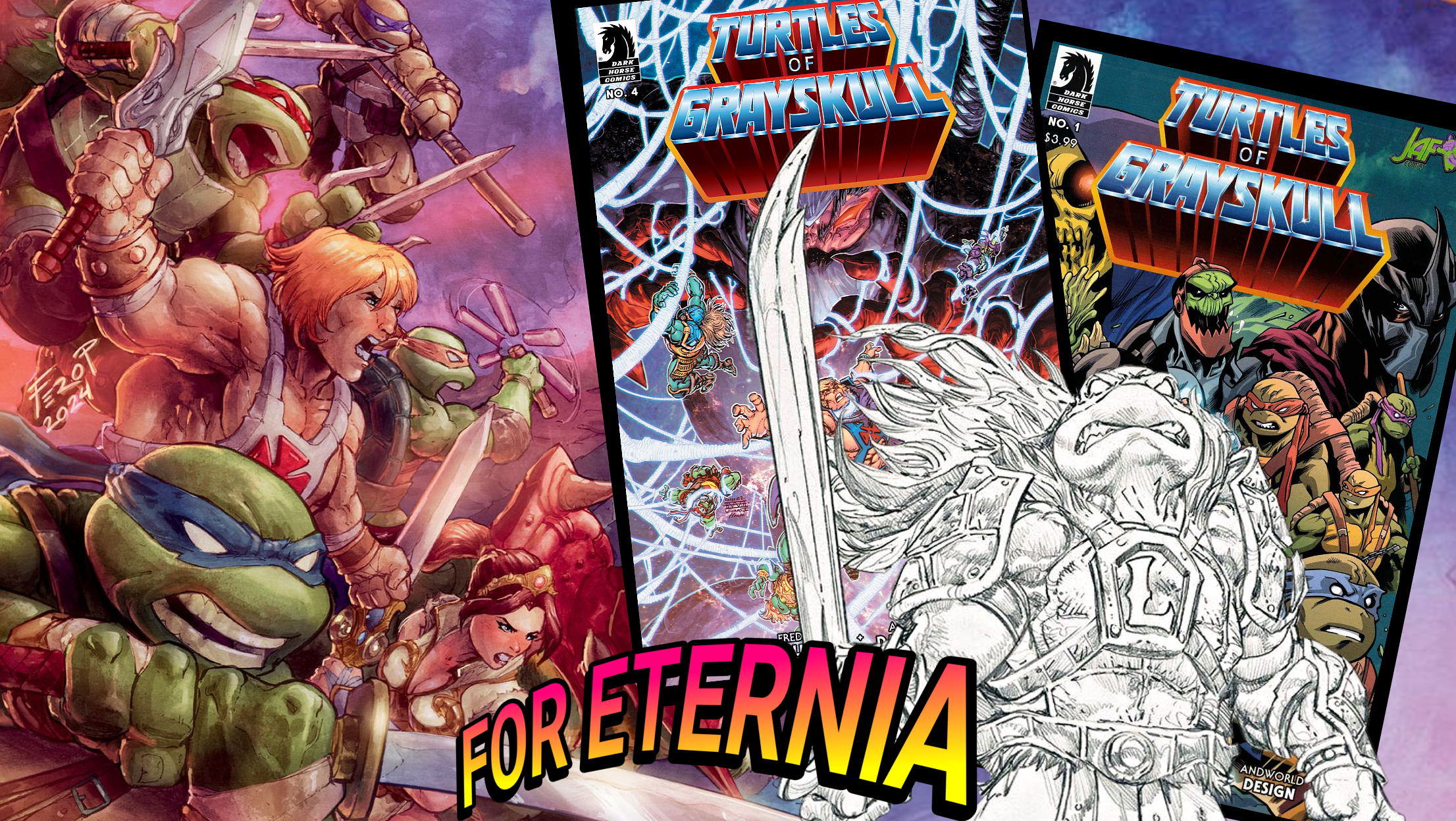 SHELL YEAH! There is a lot of things happening in the lead up to the first issue of Dark Horse Comic’s new Masters of the Universe & Teenage Mutant Ninja Turtles mashup comic series titled “Turtles of Grayskull”. Let's check them out. New Retailer Exclusive Variant Cover: Back in May only three covers were officially announced for the premiere issue of "Turtles of Grayskull" comic. Then, several days ago, we announced two more retailer exclusive #1 covers from Eclectables Comics. And now... we can add a sixth variant cover to the mix exclusively from JAF Comics by artist Chris Campana!…