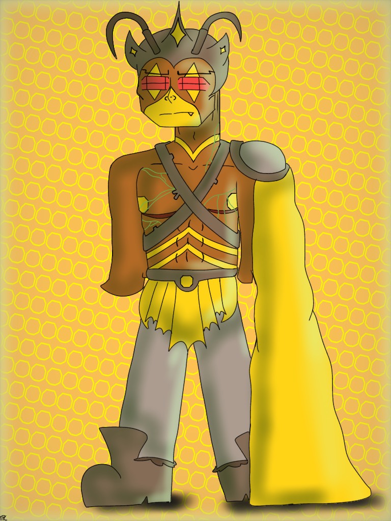Beewax is a character I created since October, though I don't have his beta design I have his new flourishing design that I created a few weeks ago! The main backstory of Beewax is that the Waspators are very territorial and no other kingdom appreciated their invasions and built their kingdom in the trees. The past king and queen had a fight which made the queen leave and the king to be deiced. This left Beewax to take over at a young age.