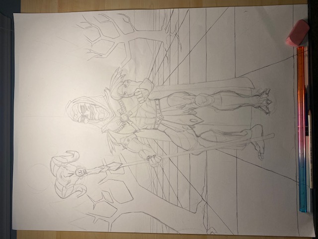 A very nice sketch. I am no artist so please excuse my next question. Is Skeletor standing on a stone walkway or is that a temporary drawing tool?