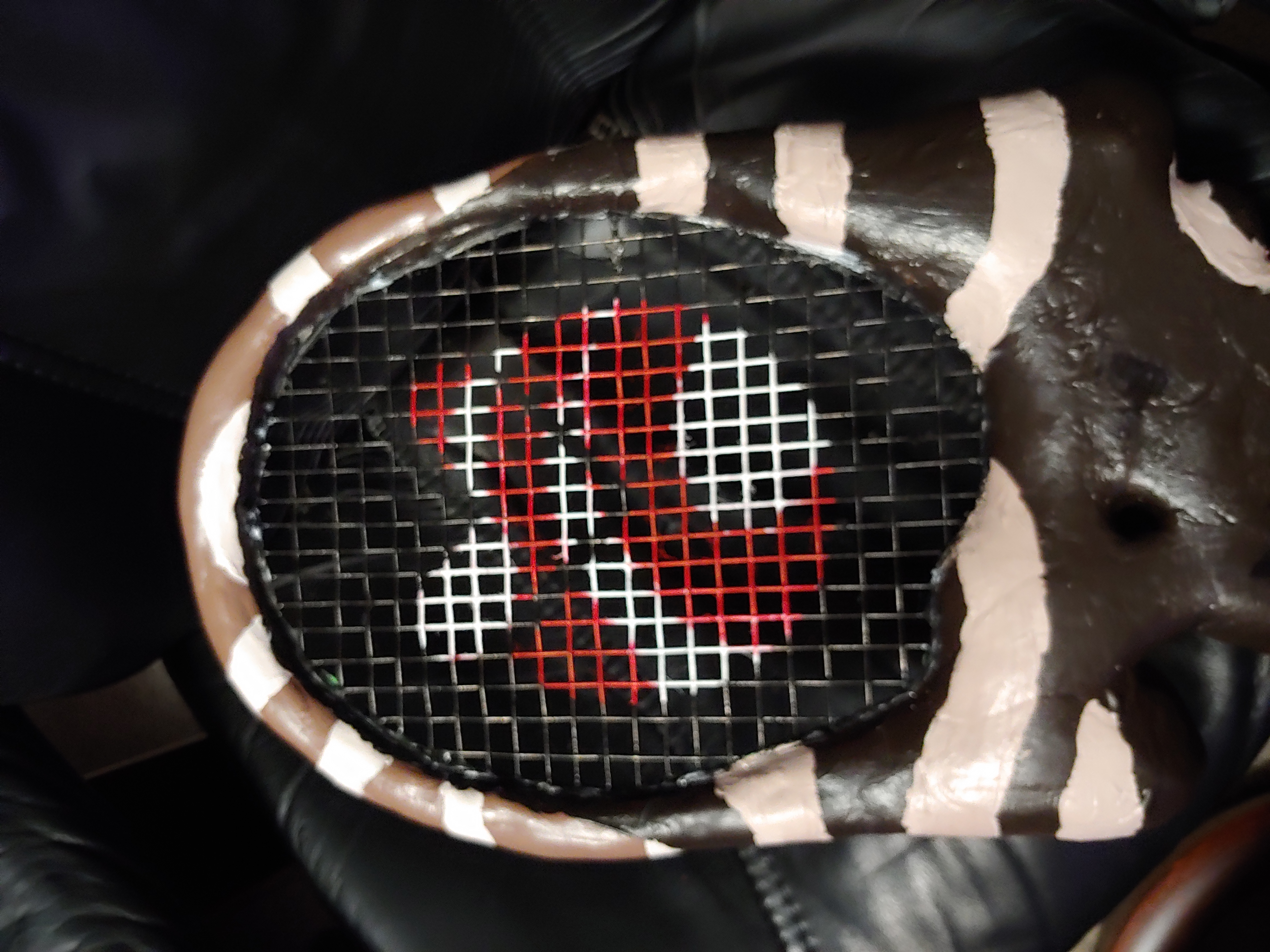 And proto piranha logo on the strings is done. Not only was that was much easier than I thought, it turned out better than expected. Now I just need to spray the protective coating onto it and it'll be done.