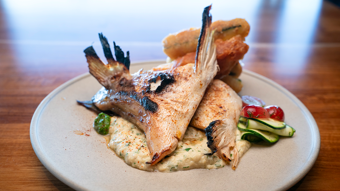 DISH: Beer braised chicken wings, capsicum sauce, roast olives & parsley salad.