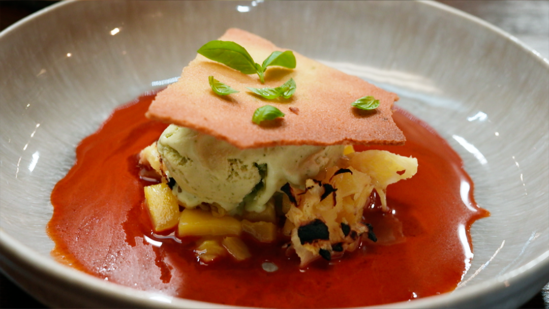 Tonight on MasterChef, guest chef/judge Blayne Bertoncello brought in his delicious dessert called Variations Of Sourdough & Strawberry With Balsamic & Elderflower.