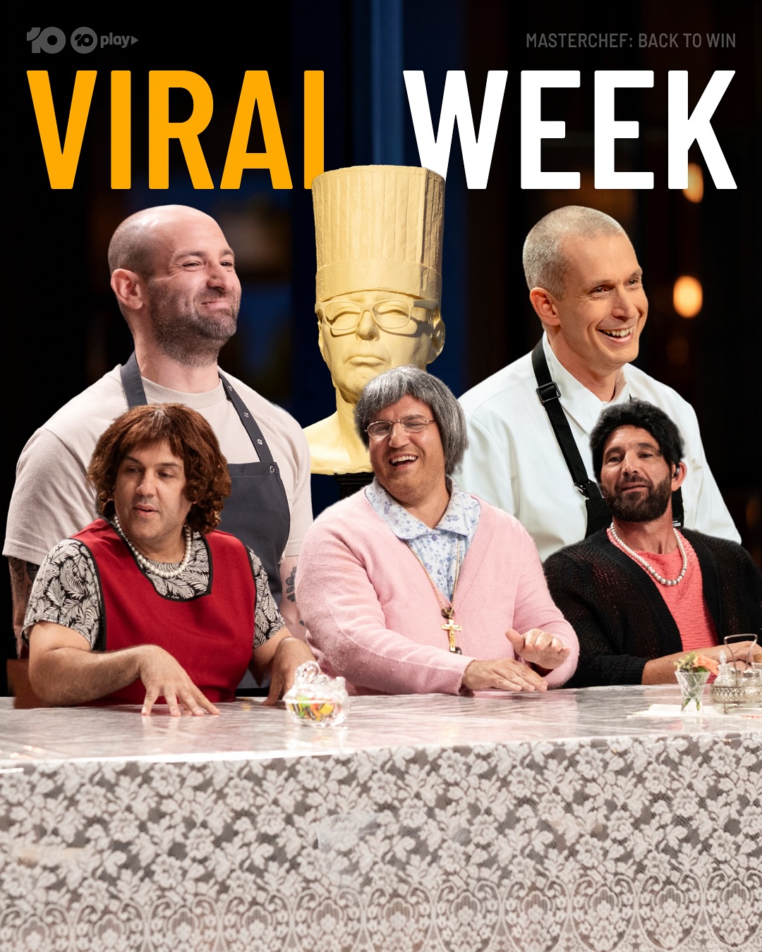 Here are some of the highlights for this week's MasterChef episodes. We will be treated to various guests like Aussie drag queen comedy troupe Sooshi Mango (Joe & Carlo Salanitri & Andrew Manfre), last year's Dessert Masters winner John Demetrios and chef Andy Cooks.