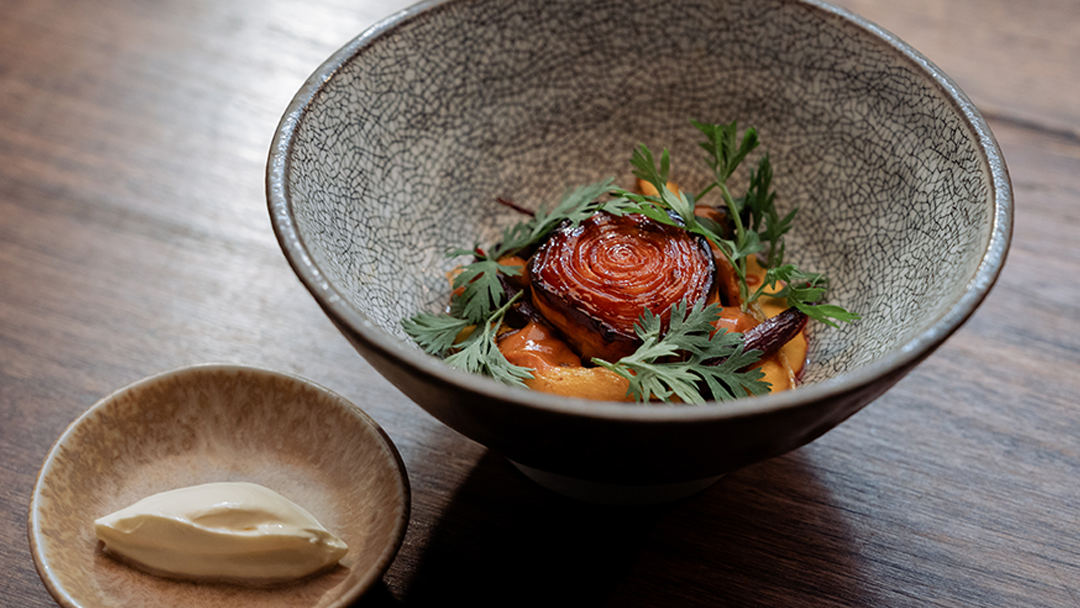 Sarah made a dish consisting entirely of Carrots! In less skilled hands than these, it could have been a boring one note dish, but Sarah is a super-talented legend and she made those carrots sing by cooking them in different ways and loading flavour upon flavour, texture upon texture and amazing everyone. She made a Carrot Wheel & Fennel Spiced Gastrique, Masala Carrot Gel, Carrot & Creme Fraiche Puree, Pickled Heirloom Carrots, & Carrot Top Garnish.