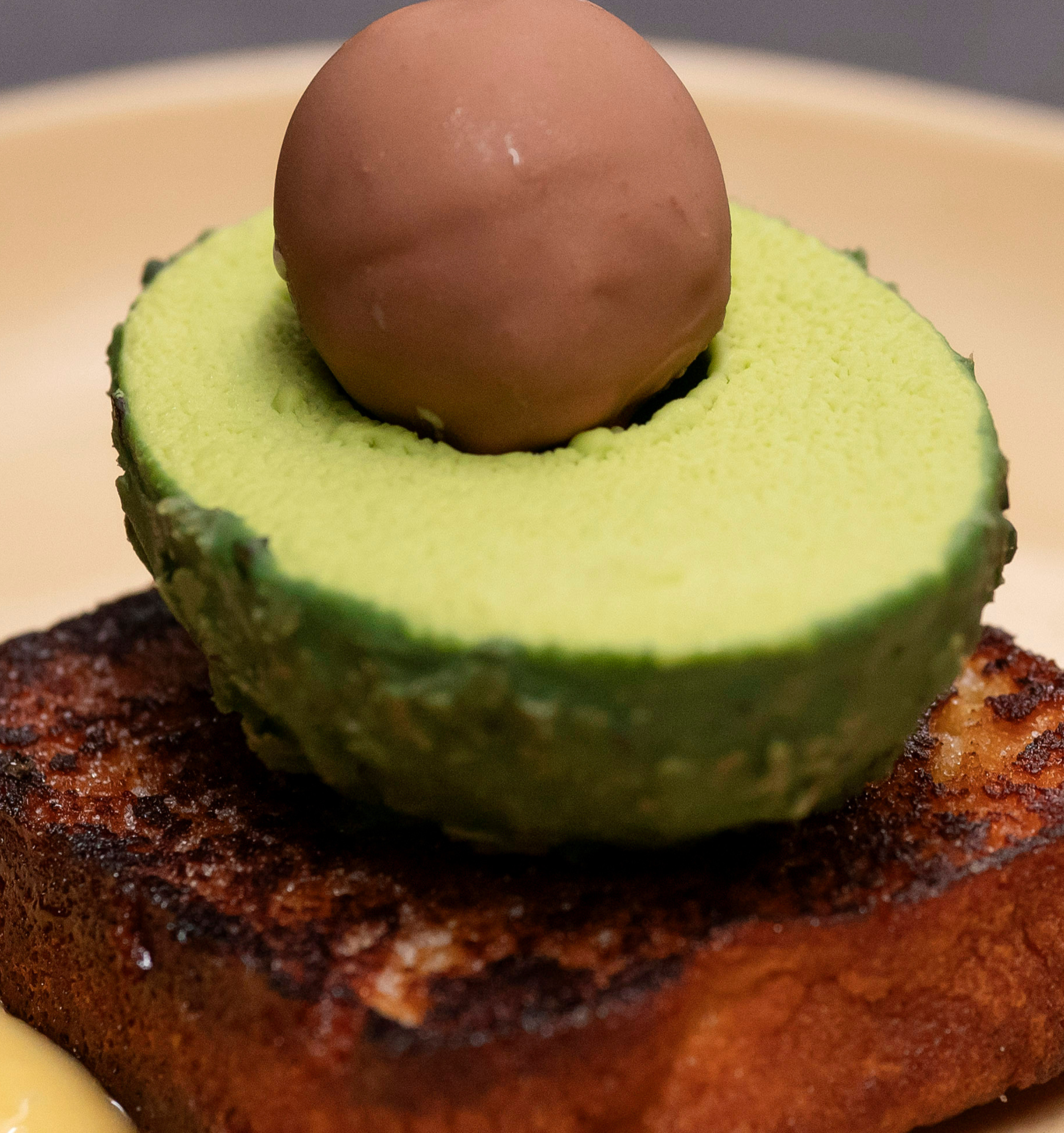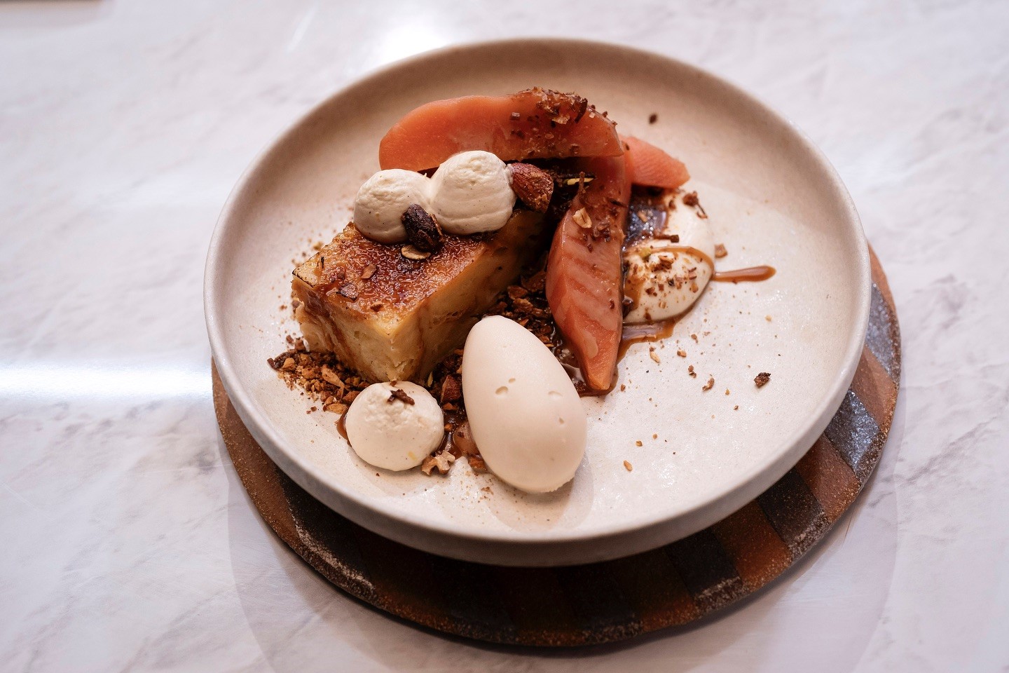 Here is a photo of the winning dish from Emelia Jackson, Alisha Henderson & Jana Lai! This dish consists of bread pudding, maple ice cream, poached quince, muesli crunch and ricotta chantilly cream.
