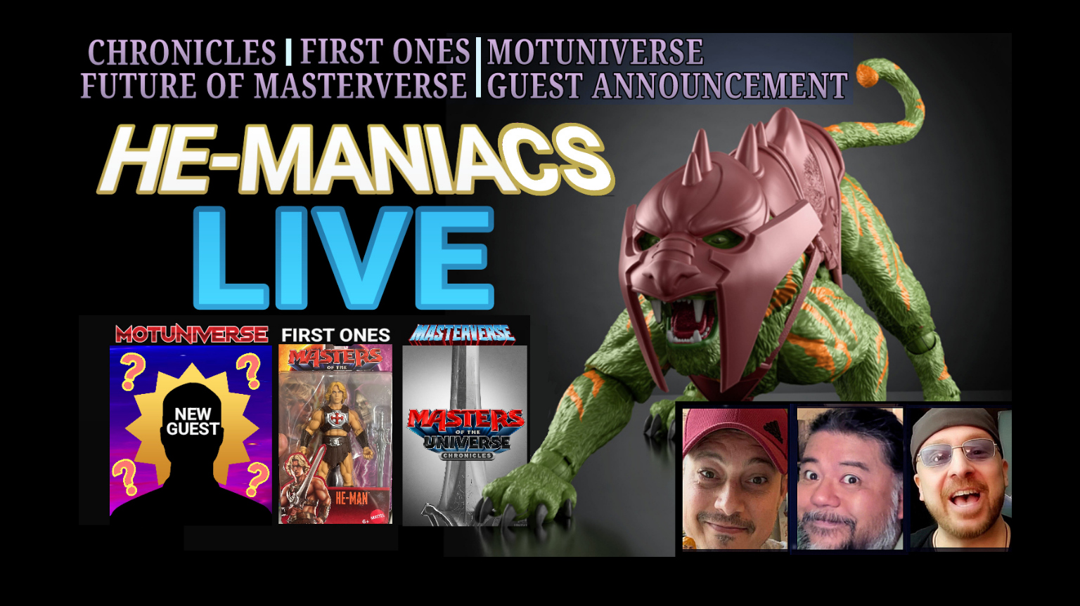 There is certainly a lot to talk about when it comes to Masters of the Universe action figures! So join the conversation with AJ, Mike and Jay as they discuss the New "Masters of the Universe" Movie Action Figure Lines CHRONICES, FIRST ONES, and the Future of MASTERVERSE! Plus they Announce a New Guest coming to MOTUNIVERSE, the ultimate He-Man and She-Ra Convention! Find us LIVE at 3:00 PM ET / 12:00 PM PT on YouTube (you can also find us on X and Facebook) https://www.youtube.com/live/dZk-ai9VgCs?si=ad0TAsKutSDUFsuw Hope to see you then!