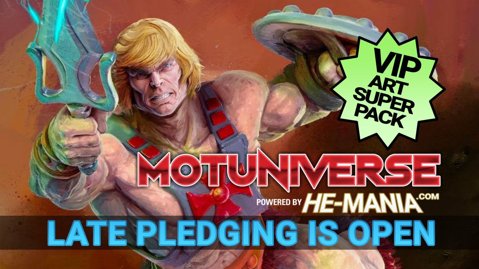 It's not over yet! MOTUNIVERSE still needs your help to make next year's convention the biggest and best Masters of the Universe celebration ever! The Kickstarter crowdfunding campaign for the ultimate He-Man and She-Ra fan celebration “MOTUNIVERSE” was a resounding success, but did you know that Late Pledging is still available on Kickstarter? And what is headlining this MOTUNIVERSE late pledging campaign is the new VIP ART SUPER PACK. It's a package that bundles the following amazing items at a discounted rate: Weekend Pass (40% Off) He-Man / Prince Adam Lenticular Print ($5 Off) Two Swords of Destiny Art Print ($5…