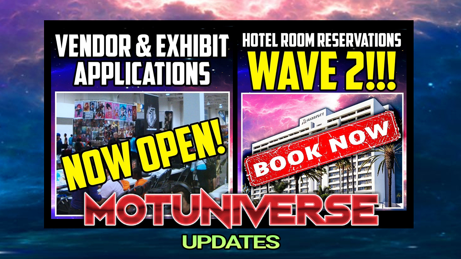 If you haven't heard, MOTUNIVERSE, the ultimate He-Man and She-Ra fan convention will be uniting on Memorial Day Weekend, May 23rd & 24th 2026 at the “Torrance Marriott” in Redondo Beach in California. And today, the team behind MOTUNIVERSE released some very important updates today... not just for He-Man and She-Ra fans planning to attend the can't-miss-MOTU-celebration-of-2026... but for vendors and exhibitors who want to participate as well! Check out all the details below: Vendor & Exhibit Applications MOTUNIVERSE is happy to report that the wait is over for all the Exhibitors and Vendors that want to participate in the…