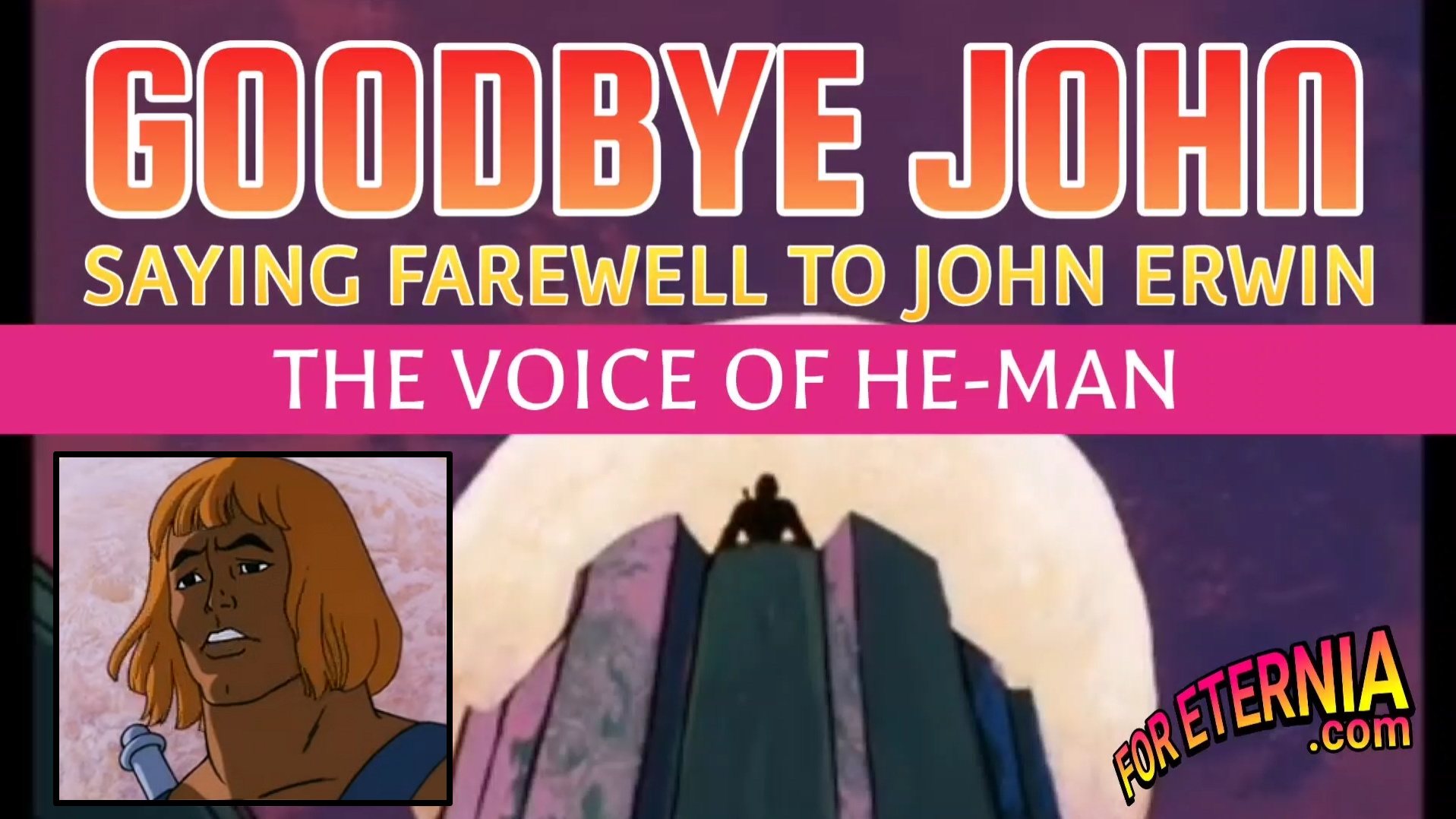 In learning of the legendary John Erwin's passing yesterday, the amazing voice actor who starred as He-Man and Prince Adam in the 1983 "He-Man and the Masters of the Universe" classic cartoon, we have created a tribute video celebrating this iconic man in this iconic role. You can watch it directly on YouTube by CLICKING HERE, or watch it embedded below: