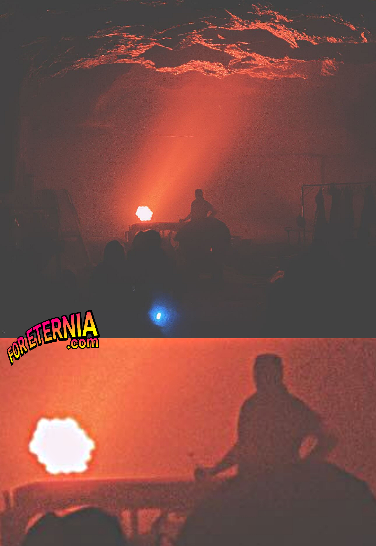 An atmospheric image of what appears to be a man at a work station, shared by "Masters of the Universe" Movie He-Man actor Nicholas Galitzine as they film in Wookey Hole and possibly Beer Quarry Caves.