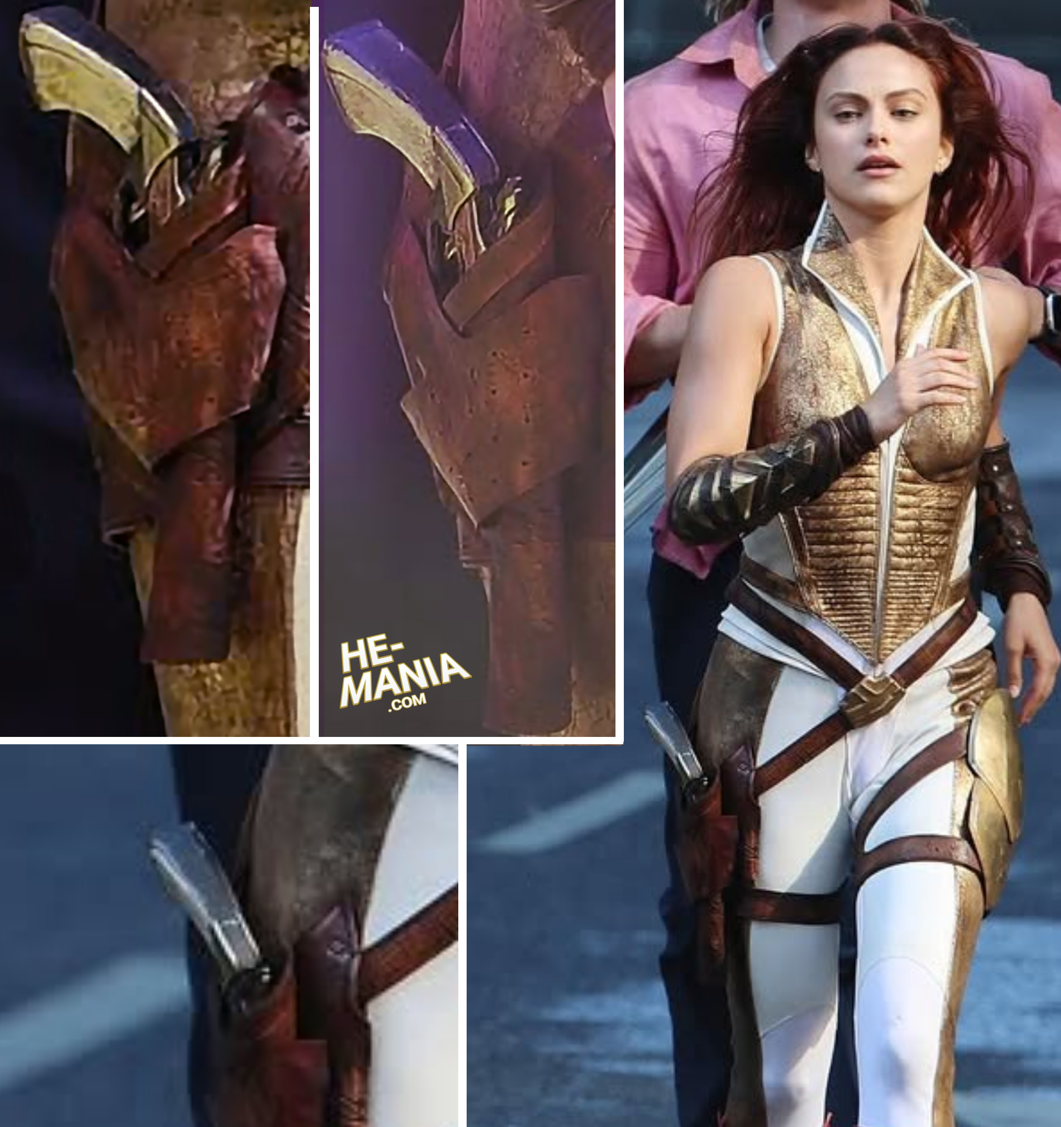 Taking a closer look at the holstered pistol of TEELA, worn by actress Camila Mendes as she filmed scenes for the upcoming "Masters of the Universe" Movie.