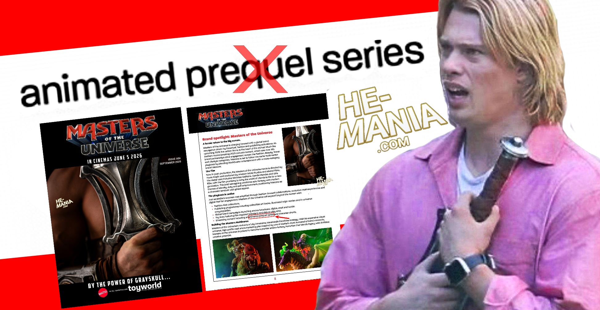 It appears the new upcoming "Masters of the Universe" Animated Series that was billed as a "prequel" was incorrect. Read on for details. Back on September 3rd, we broke the news that a new "Animated Prequel Series" was on the way, per Toy World Magazine and Mattel. Toy World Magazine partners with Mattel every year to produce a supplement to their magazine that brings their readers the latest news on Mattel's hottest brands (and this year "Masters of the Universe" was on the top of the list, thanks to the upcoming big-budget movie.) Among Mattel's playbook to promote the movie…